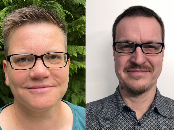 Manuela Wechselmann (links, Mitglied des Vorstandes und Rollstuhlbasketballspielerin der SGH) und Alexander van der Brock (Trainer Rollstuhlbasketball und engagiertes ehrenamtliches Mitglied des SGH)