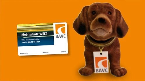 Dazu gibt es einen echten Klassiker fürs Armaturenbrett. Der BAVC Wackeldackel mit Echtheitszertifikat wird Ihr treuer Begleiter für unterwegs.